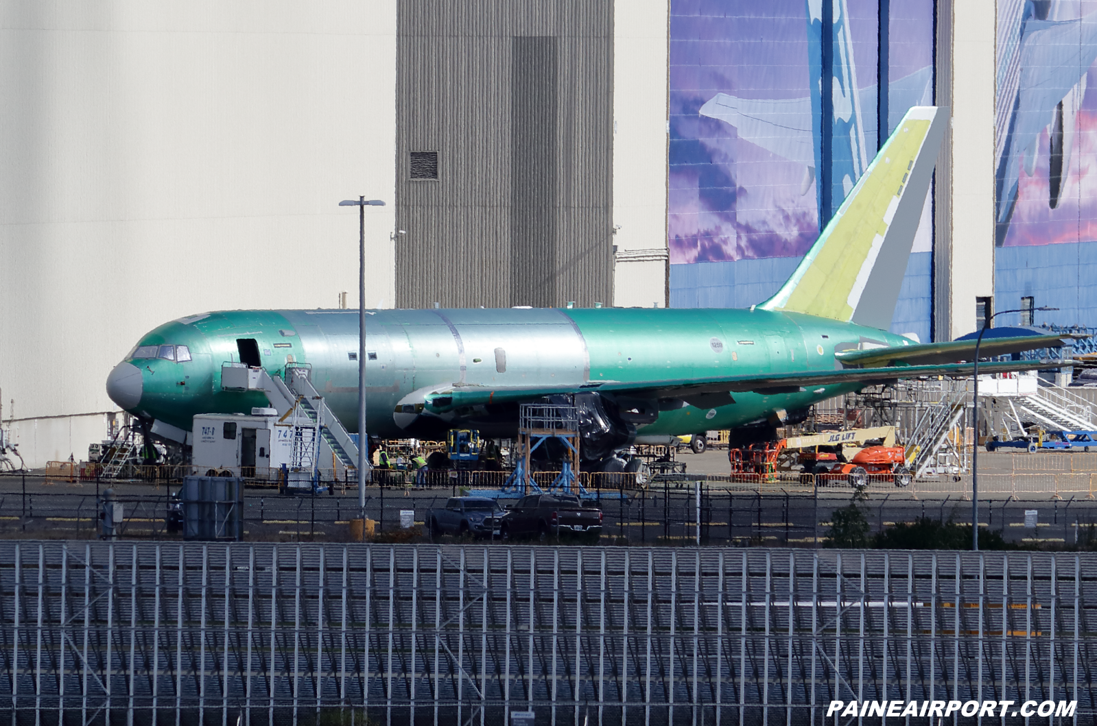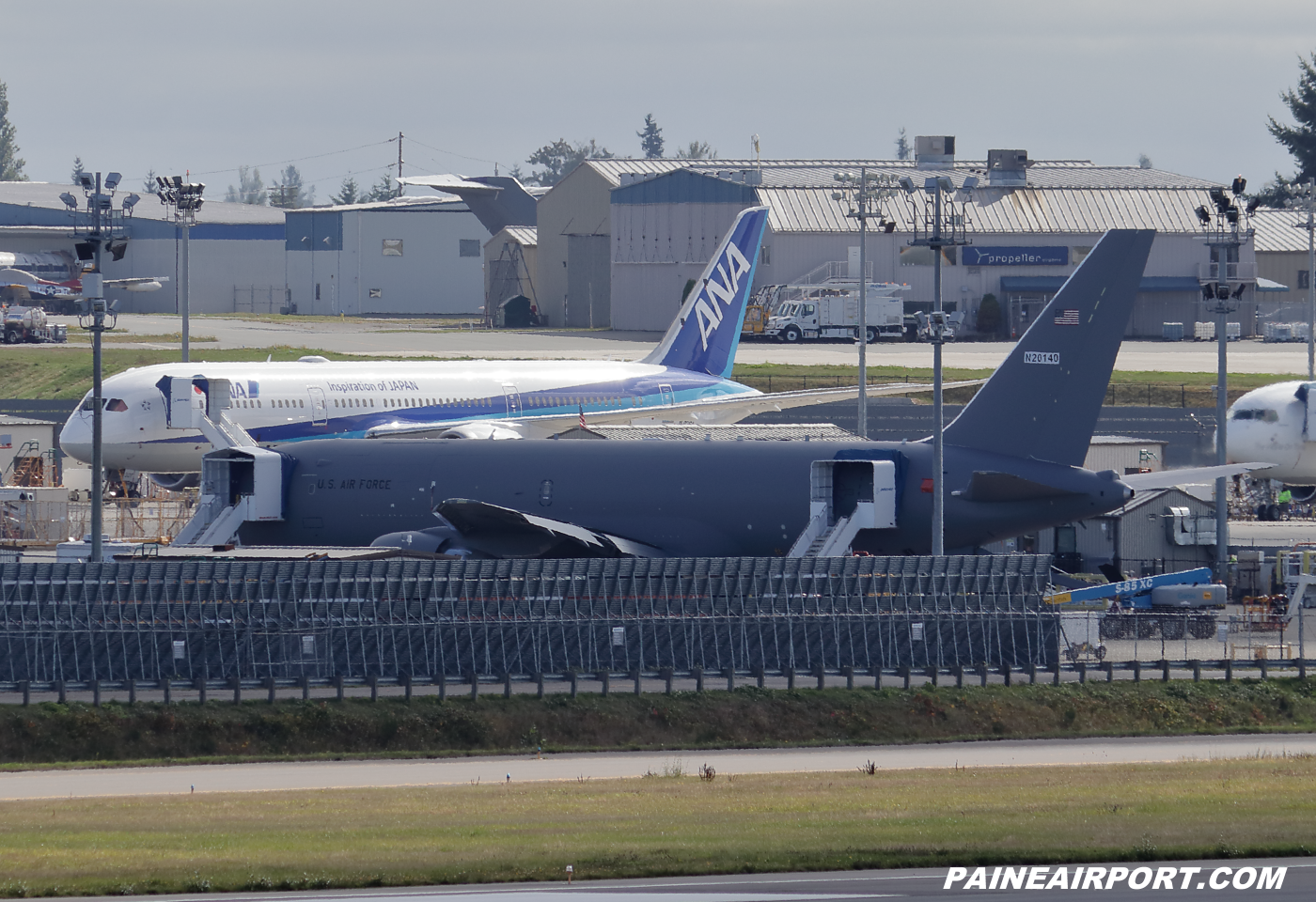 KC-46A 19-46065 undergoing EMC electromagnetic compatibility antenna scans of the MIDS multifunctional information distribution system on the flightline.